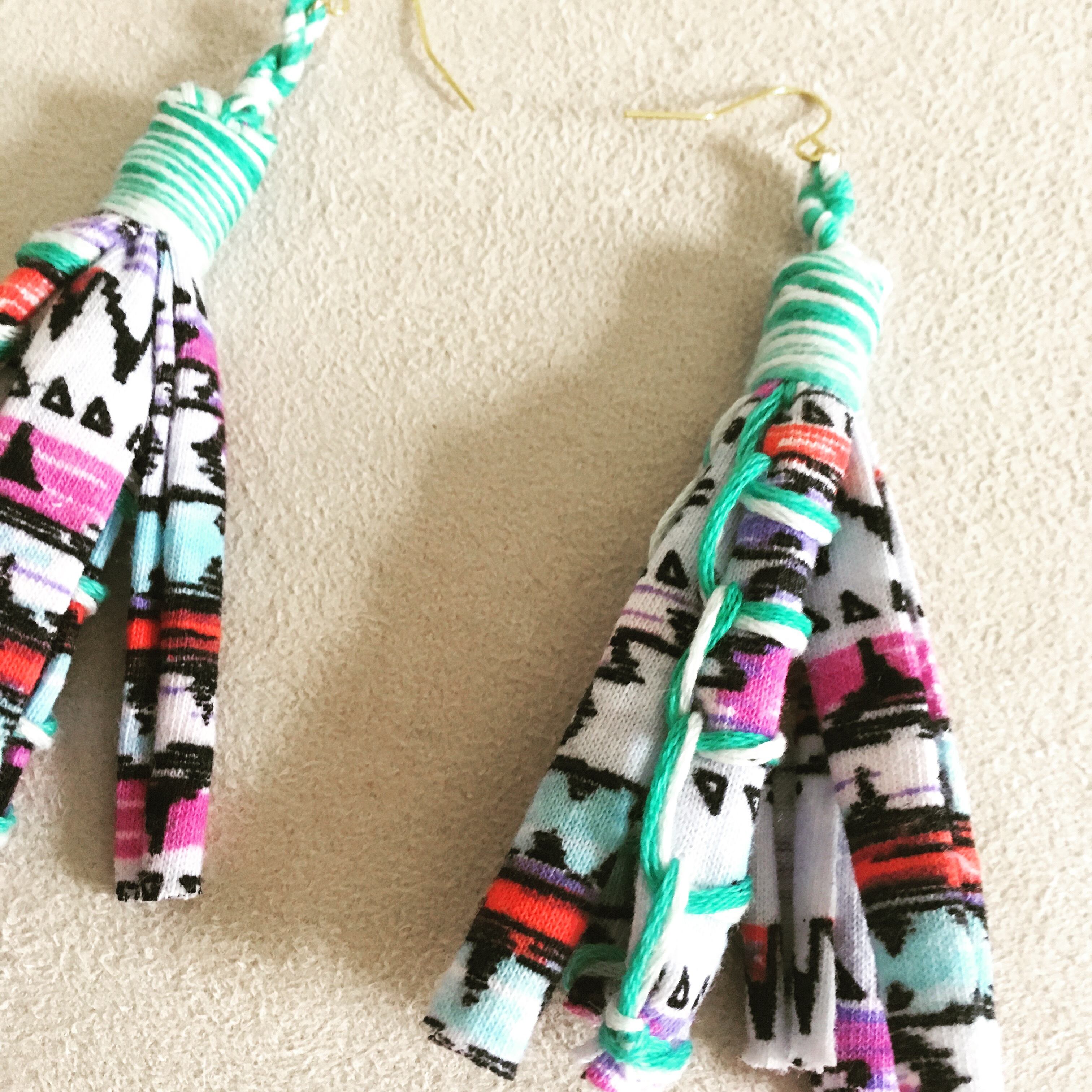 【グリーン】ズパゲッティスモッキングタッセルピアス グリーン【1点モノ】