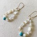 ムーンストーン×ビーズを交互に並べ、センターにターコイズをあしらったピアス キドニーフックですので紛失しづらいです 取り外し可能なのでサークルピアスなどにジョイントしてもいいですね 全長 約5.5cm 片側のみの重さ 約2.2g