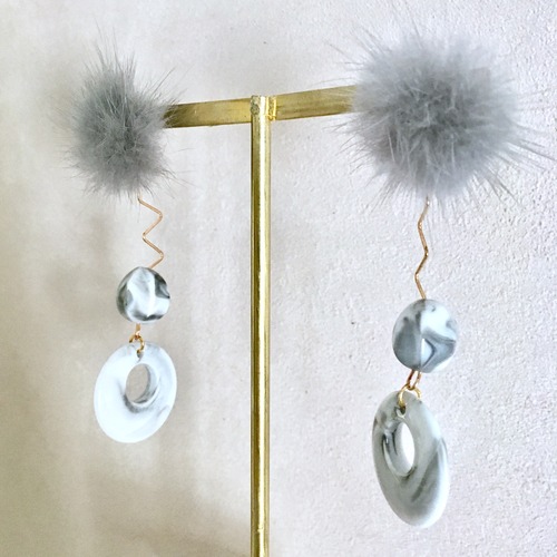 ガーリーなイメージのポンポンですが、ギザギザのメタルと大理石柄のパーツでクールでモダンな雰囲気に仕上げました