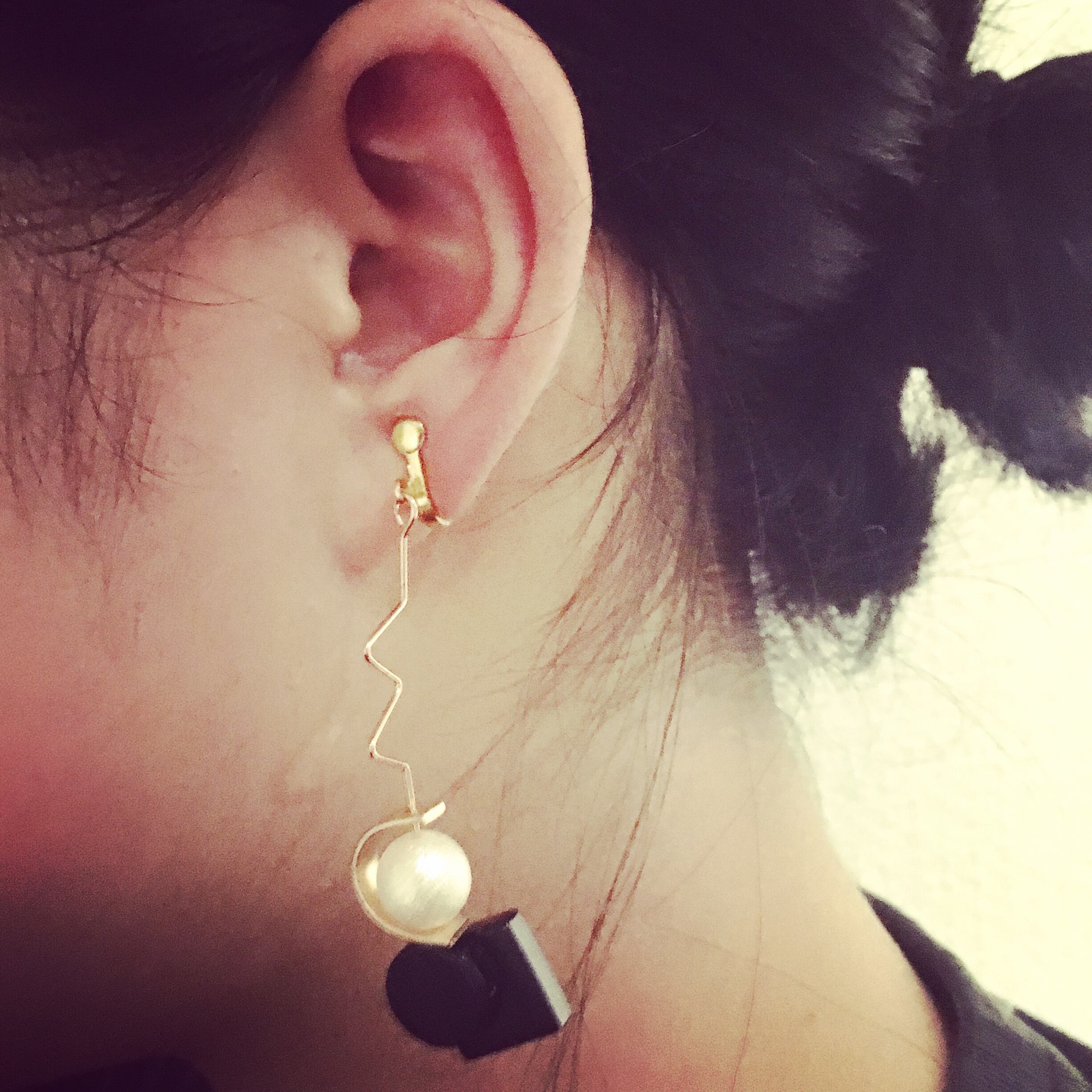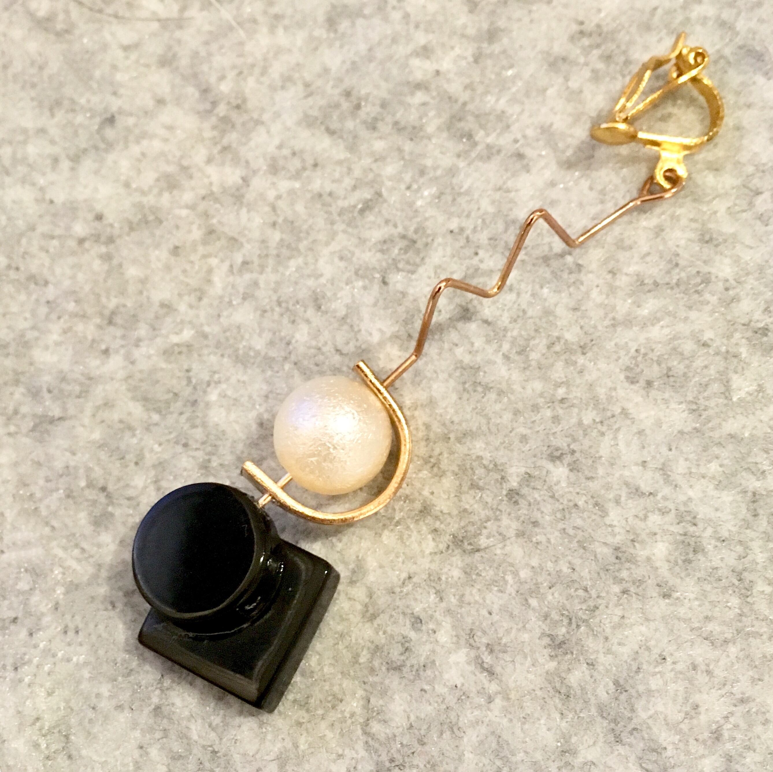 コットンパール風のマットなシュガーパールに、丸と四角のパーツを合わせたらレトロな雰囲気になりました インパクトがあるので敢えて片耳だけにつけるのがオシャレ 写真ののように耳の軟骨につけてもカワイイですよ